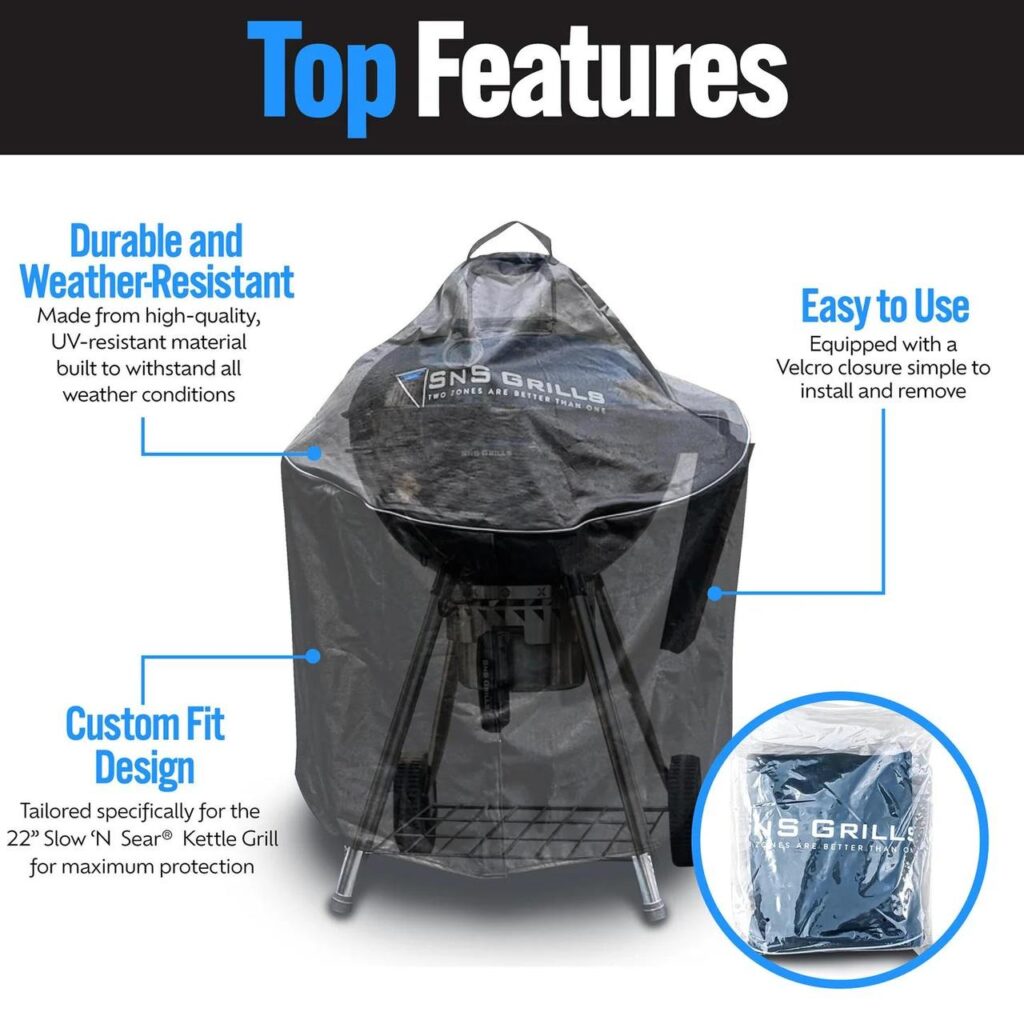 Цей чохол розроблений спеціально для вугільного гриля SnS Kettle 57 см і забезпечує надійний захист від дощу, пилу, вітру та інших погодних впливів.
