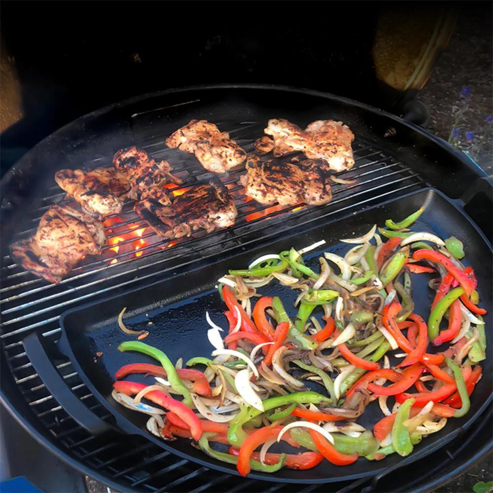 Цей піддон діаметром для грилів діаметром 57 см вирізняється функціональністю, надійністю й універсальністю, надаючи вам нові можливості для приготування їжі. На відміну від стандартних піддонів для гриля, він виготовлений із чавуну, що робить його стійким до сильного жару. Це означає, що ви можете використовувати його не тільки для непрямого нагріву, а й як повноцінне деко-сковороду для обсмажування. Хочете зробити ідеальний стейк рибай прямо над вогнем? Цей піддон впорається з цією частиною легко і без ризику деформації.