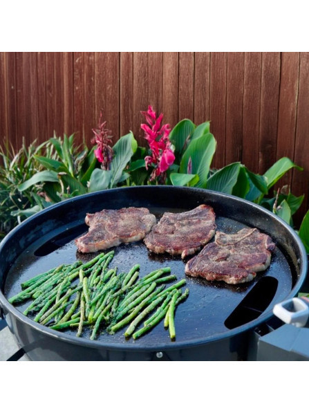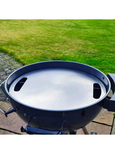 3 опорні решітки вашого гриля мають бути достатньо міцними, щоб витримати вагу 10,43 кг (23 фунти) плюс їжа/рідини. Планча має діаметр 55 см (21,65 дюйма). Також добре працює на існуючій решітці для приготування.