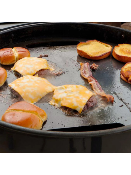 Планча з вуглецевої сталі від SnS Grills забезпечує гладку поверхню для приготування їжі з відмінною теплопровідністю, ідеально підходить для бургерів, філадельфійських стейків, страв у стилі Хібачі, сніданків і багато іншого. Після обробки* природна антипригарна поверхня робить цю планчу зручною у використанні, легкою у догляді та очищенні.