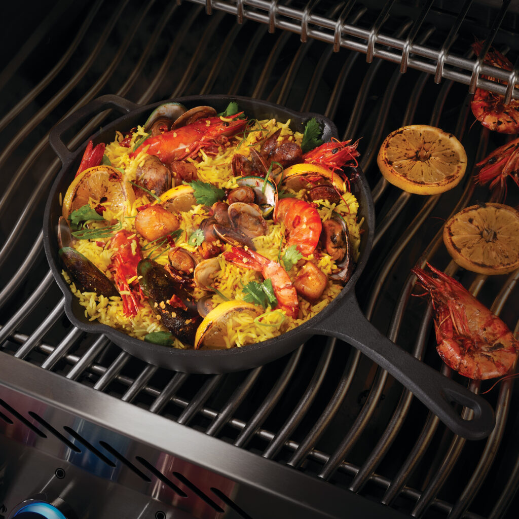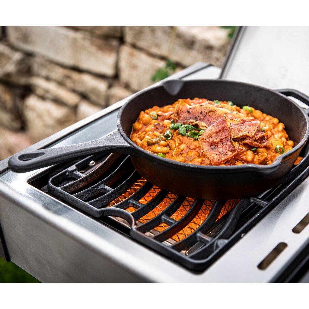 Чавунну сковороду «Наполеон» можна ставити не тільки на бічну плиту або всередину газового грилю, а й у зону деревного вугілля. В останні роки чавун став популярнішим серед багатьох любителів барбекю. Чавунні сковороди дуже модні завдяки своїм особливим тепловим властивостям і тому факту, що тут створюється вражаючий брендинг. Готує овочі, рибу чи креветки та морські гребінці на сковороді. Надійна та довговічна, з чавунною сковородою Наполеон ви приготуєте на своїй тарілці безліч смачних страв.