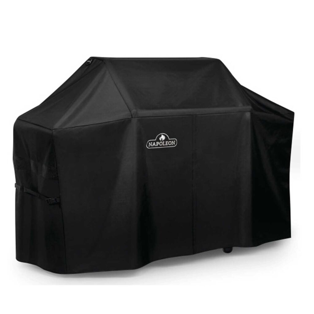 Зручний чохол для Napoleon Prestige PRO-665, який допоможе захистити Ваш гриль від поганих погодних умов, пилу тощо. Захистіть свій газовий гриль Napoleon Prestige PRO-665 високоякісним чохлом для гриля. Цей чохол для гриля виготовлений із міцного поліестеру ПВХ. Даний матеріал чохла захищає від ультрафіолетового випромінювання і запобігає вицвітанню кольору, а також оснащений 7 сантиметровою вентиляційною смугою, яка зменшує накопичення вологи під чохлом. На чохлі вишитий великий логотип Napoleon, є дві металеві петлі для підвішування для зберігання, коли чохол не використовується.