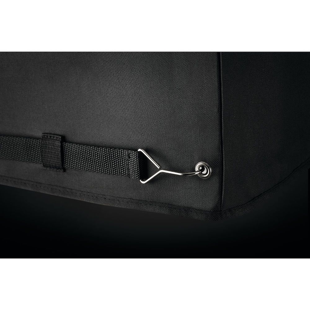 Регульовані ремені з пряжками з боків запобігають зміщенню каптуру навіть у негоду, а спеціальні люверси на каптурі полегшують його зберігання. Використовує зручну застібку-липучку на передній частині капюшона для легкого доступу до відсіку для зберігання під грилем, а також для легкого накриття та зняття гриля.