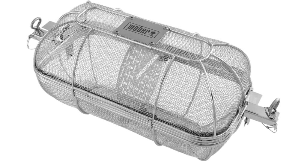 Новий кошик — нові можливості! З легкістю під’єднайте кошик до рожну та готуйте шматочки м’яса, картоплю фрі, овочі та навіть попкорн без хвилювання, що їжа випаде через щілини.