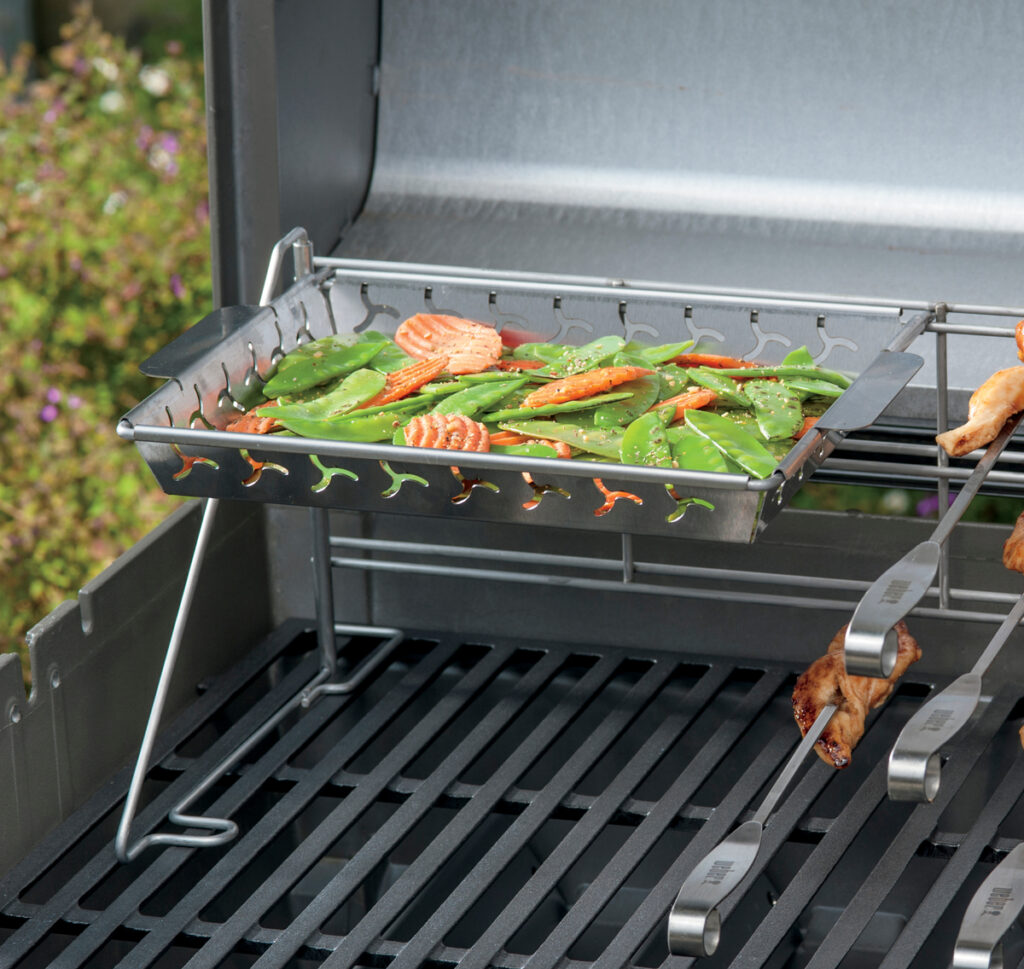 Запечіть ідеально приправлені овочі або невеликі шматочки м’яса в наборі для грилювання Weber Elevations, поки основна страва смажиться знизу. Кошик вставляється у підтримуючу рамку, яка встановлюється в багаторівневу систему гриля Elevations, що дозволяє збільшити місткість вашого барбекю.