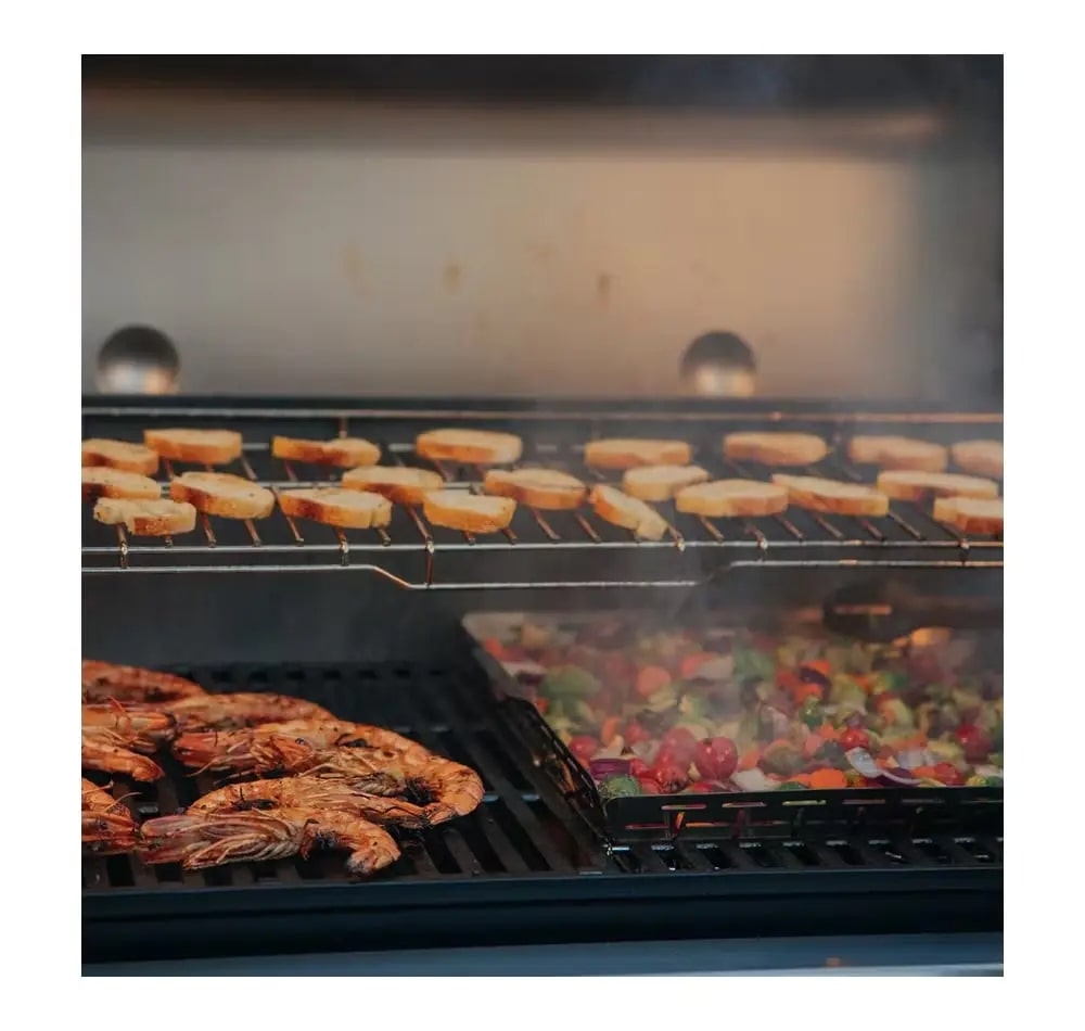Все, що вам потрібно зробити — це замінити решітку з правого боку на кошик для смаження Weber Crafted, та у вас є все щоб карамелізувати овочі, делікатні морепродукти, дрібні шматочки м’яса, картоплю, тощо.