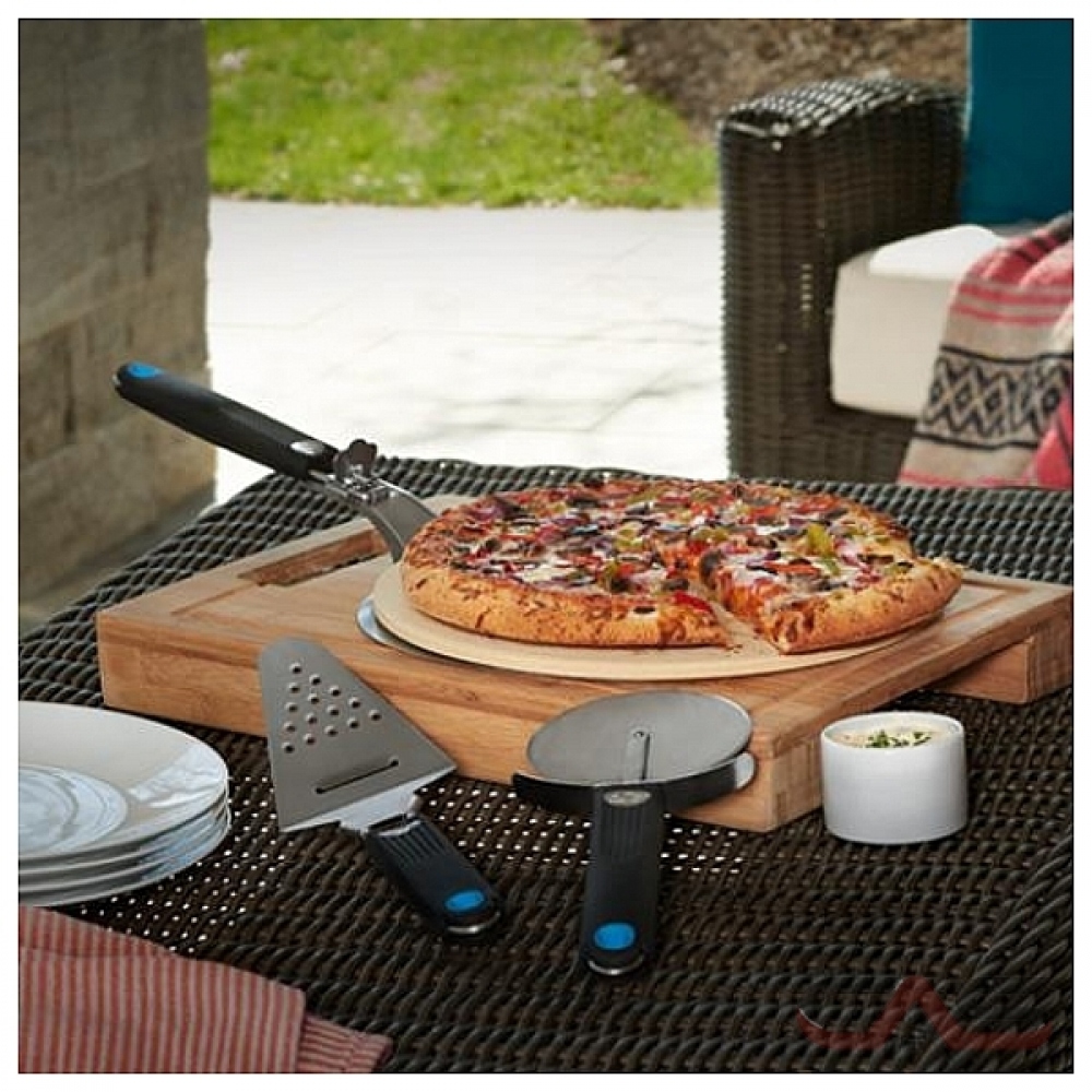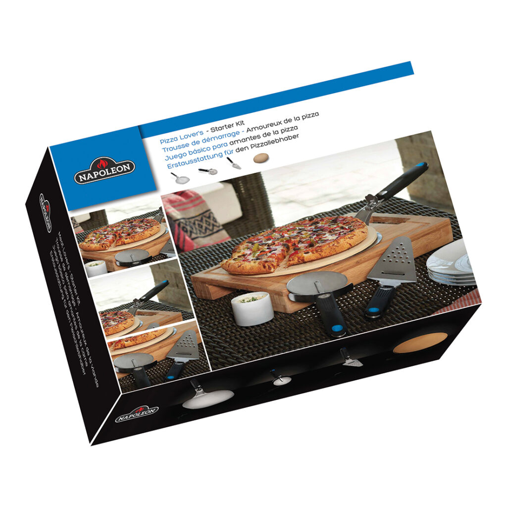Зі стартовим набором Ви отримаєте все необхідне для приготування ідеальної піци середнього розміру: камінь для піци, знімач піци з відкидною ручкою, великий ніж для піци та терка для сиру. Пористий камінь втягує вологу з тіста, що призводить до утворення ідеальної свіжої скоринки. Діаметр каменю для випічки піци – 34,3 см. За допомогою знімача для піци з нержавіючої сталі Ви легко перенесете тісто на гриль, а потім свіжоспечену піцу на стіл. Для економії місця знімач складається при зберіганні. Ножем для піци Ви легко наріжете піцу і пригостите всіх друзів. Покрити піцу товстим шаром сиру Вам допоможе тертка 2 в 1. Якщо піца – Ваша пристрасть, то набір для любителів піци ідеально підходить для Вас!