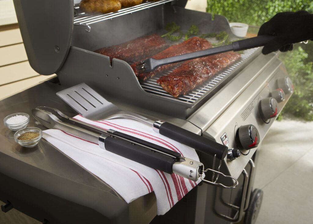 Лопатка, з загостреними з трьох сторін краями, завдяки якій ви запросто зможете підняти шматочки м’яса або ніжні продукти, щипці з простим фіксуючим механізмом для надійного захоплення й утримання продуктів під час грилінгу і повнорозмірна кулінарна кисть — все необхідне для роботи зі стравами зібрано в одному наборі.