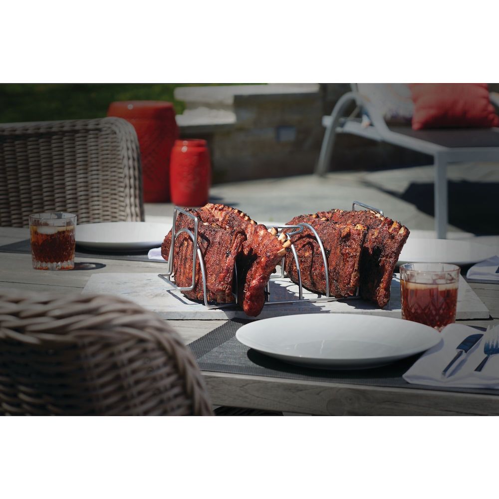Тримач Наполеон виготовлений із нержавіючої сталі, яка міцна, довговічна та не іржавіє. Дизайн з прорізами та отворами дозволяють жиру стікати вниз, а теплу рівномірно розподілятися. Пристрій можна мити в посудомийній машині, що полегшує його чищення після використання. Купити тримач для ребер Наполеон за привабливою ціною ви можете в інтернет-магазині Napoleon, який спеціалізується на реалізації товарів цього бренду.