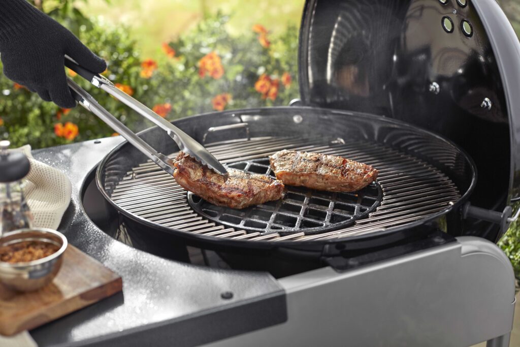 Обсмажуйте на сильному жарі стейки, відбивні й вирізки, завдяки крутій решітці Weber Gourmet BBQ System.