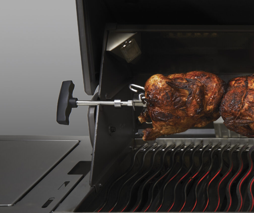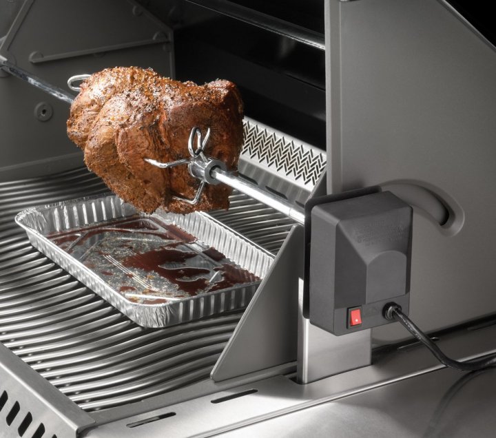 Страви приготовані в грилі на рожні є одними з найкращих. Страви з рожна є соковитими і відмінно підійдуть для того, щоб нагодувати велику кількість людей. Готуйте страви ресторанної якості на рожні прямо на власному задньому дворику. Великий квадратний стрижень з нержавіючої з надпотужним двигуном подолає будь-який шматок м’яса. Виделки для м’яса будуть міцно тримати продукт, який Ви готуєте.