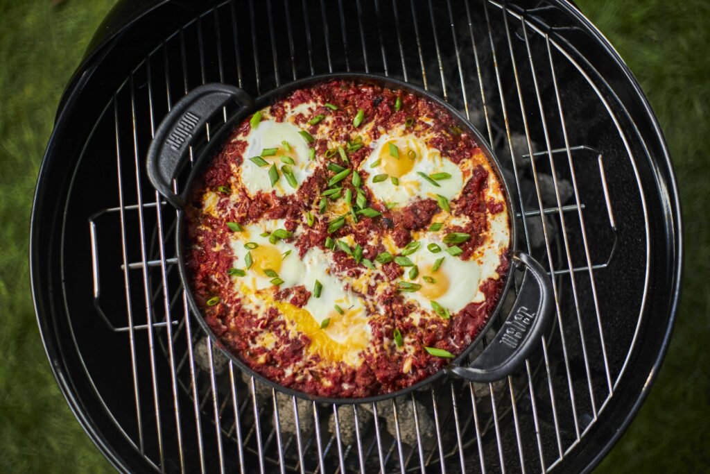 За допомогою сковороди Weber Gourmet BBQ System, ви с легкістю приготуєте ідеальний англійський завтрак, блинчики або обсмажете овочі на грилі.