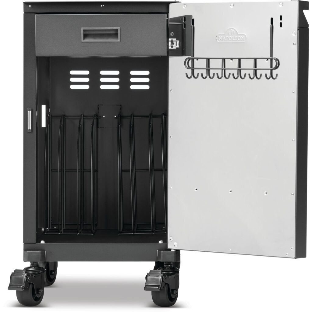 Аксесуар для барбекю Napoleon – 68004 – Тумби для зберігання Phantom Prestige®, матовий чорний колір, підходять для грилів серії Prestige® Phantom 500 V/VX , висувний ящик, гачки для інструментів, оптимізоване зберігання, 4 коліщатка, містить лівий і правий шафи для зберігання.