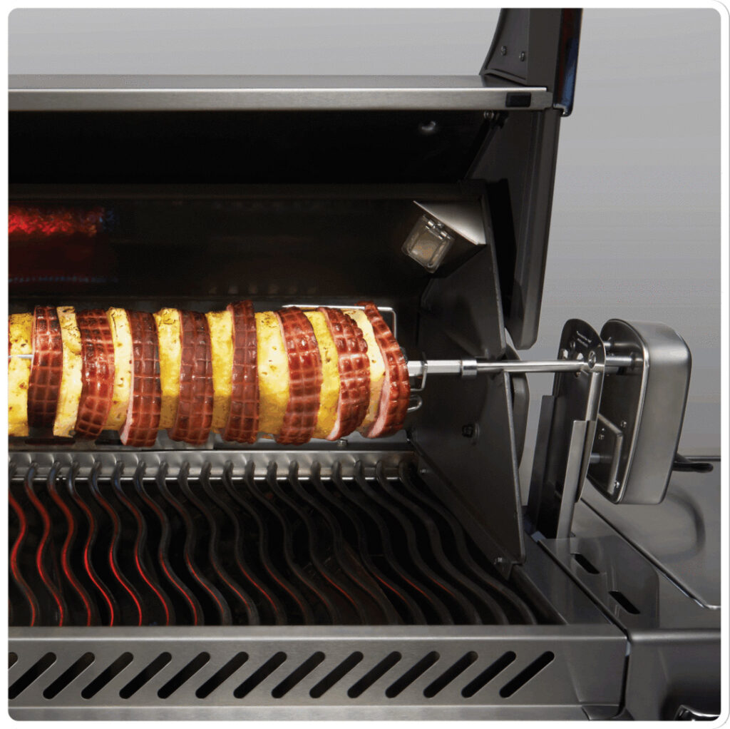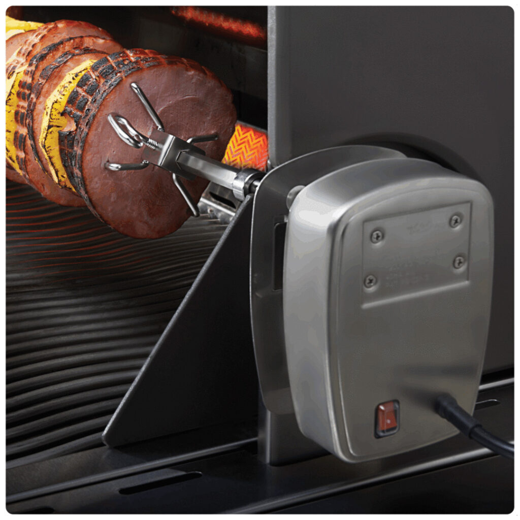 Страви приготовані в грилі на рожні є одними з найкращих. Страви з рожна є соковитими і відмінно підійдуть для того, щоб нагодувати велику кількість людей. Готуйте страви ресторанного якість на рожні прямо на власному задньому дворику. Великий квадратний стрижень з нержавіючої з надпотужним двигуном подолає будь-який шматок м’яса. Виделки для м’яса будуть міцно тримати продукт, який Ви готуєте.