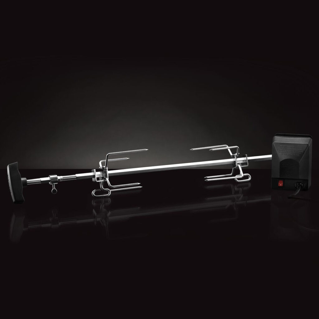 На рожні ви можете приготувати продукт до 12 кг, в той час як надпотужний двигун плавно обертає їжу для гриль досконалості. Можна забезпечити збалансоване обертання, під час приготування їжі, за допомогою противаги, яка входить у комплект. Очищення стрижня рожна і виделок відбувається на одному диханні, просто протріть стрижень з мильною водою, а вилки можна мити в посудомийній машині. За допомогою вертелів набору Ви зможете готувати як професійний шеф-кухар вдома.