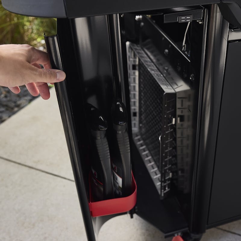Місткий боковий відсік для аксесуарів дозволяє організувати інструменти та додаткове оснащення безпосередньо біля зони приготування.