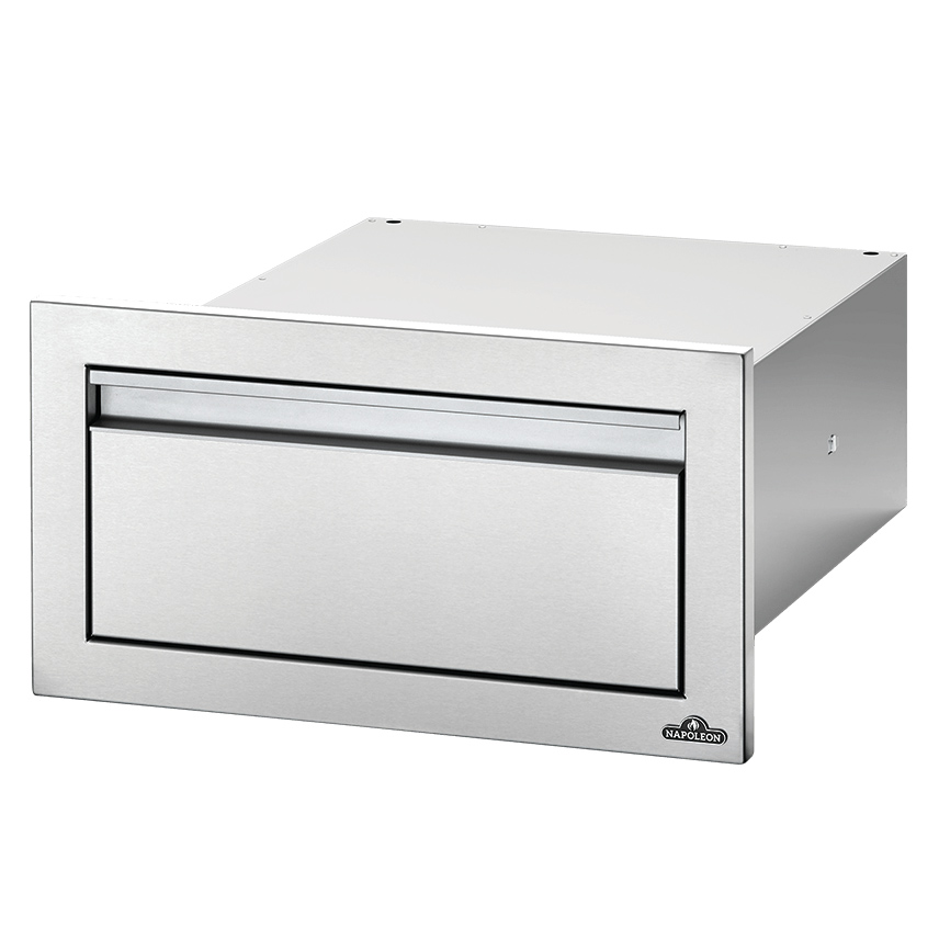 Цей стильний елемент складається з одного невеликого висувного ящика, який виготовлений з нержавіючої сталі та оснащений доводчиками для м’якого закриття. Зручна ручка ящика виготовлена з анодованого алюмінію, що гарантує довговічність та стійкість до подряпин. Ідеально підходить для зберігання аксесуарів для барбекю, спецій та іншого приладдя на Вашій літній кухні.