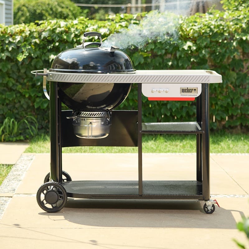 Вугільний гриль Weber Performer Premium 57 см — знайома продуктивність kettle із продуманим простором для підготовки, подачі та зберігання.